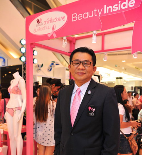 นายธรรมรัตน์ โชควัฒนา กรรมการผู้อำนวยการและรองประธานกรรมการบริหาร บริษัท ไอ.ซี.ซี.อินเตอร์เนชั่นแนล จำกัด (มหาชน) กล่าวว่า ในปีนี้ วาโก้ ได้ร่วมมือจากสถาบันมะเร็งแห่งชาติ และสมาคมโรคมะเร็งแห่งประเทศไทย จัดกิจกรรมโรดโชว์การกุศล “โครงการวาโก้โบว์ชมพู สู้มะเร็งเต้านม Beauty Inside” เพื่อรณรงค์ให้ผู้หญิงไทยห่างไกลจากมะเร็งเต้านม อีกทั้งทางวาโก้ได้มีการยกระดับมาตรฐานการบริการไปอีกขั้น โดยจัดให้มีการฝึกอบรม “Wacoal Pink Lady Service” ซึ่งเป็นส่วนหนึ่งของโครงการ “วาโก้โบว์ชมพู สู้มะเร็งเต้านม” อย่างต่อเนื่องมาตั้งแต่เดือนกุมภาพันธ์ 2559 โดยร่วมมือกับแพทย์และพยาบาลผู้เชี่ยวชาญด้านมะเร็งเต้านมจากสถาบันมะเร็งแห่งชาติ ในการจัดอบรมพนักงานขายวาโก้จำนวน 800 คนทั่วประเทศ พนักงานที่ผ่านการอบรมจะได้รับเข็มกลัด Wacoal Pink Lady และจะทำหน้าที่ให้คำแนะนำลูกค้าในเบื้องต้นเพื่อสร้างความตระหนักถึงภัยร้ายจากโรคมะเร็งเต้านม รวมถึงแนะนำวิธีการตรวจเต้านมด้วยตัวเอง วิธีการเลือกชุดชั้นใน Balancing Bra และแนวทางการปฏิบัติตนเพื่อสุขภาพที่แข็งแรง