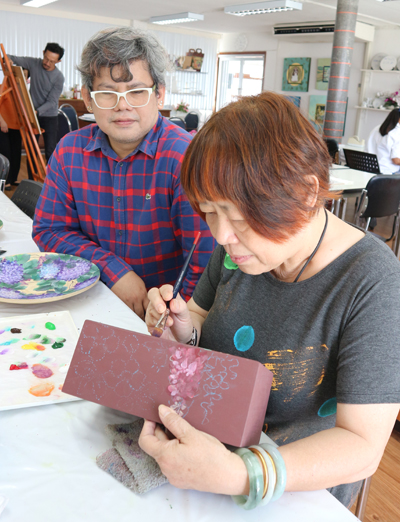 ทิพพร เหล่าสุนทร โชว์หนึ่งในผลงานที่ร่วมจัดนิทรรศการ