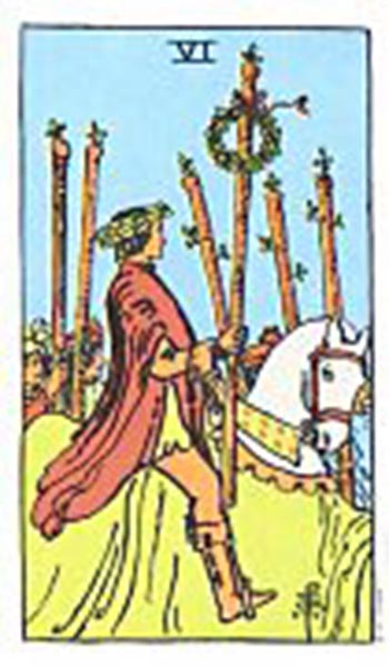อิทธิพลของไพ่ 6 ไม้เท้า (Six of Wands) วันนี้งานไปได้เรื่อยๆไม่มีอะไรน่าหนักใจ ปัญหาที่เคยมีเรื่มเคลียร์ลงตัว เงินพอใช้แต่อย่าใจอ่อนช่วยคนอื่นจนเราแย่ ความรักเนือยๆ เหตุเพราะเข้าใจผิดจากคนอื่นยุแหย่
