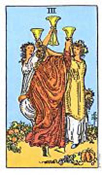 อิทธิพลของไพ่ 3 ถ้วย (Three of Cups) วันนี้ได้เฮเมื่อคนที่แอบอบมีท่าทีให้ ส่วนที่คบกันมานานจะรักกันมากขึ้น เงินทองได้ลาภลอยฟลุกๆจากครอบครัว ทำให้หายใจโล่งบ้าง งานเด่นเพราะเจ้านายส่งเสริม