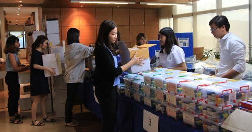 ช่วยกันจัดของใส่กล่องกันอย่างตั้งใจ