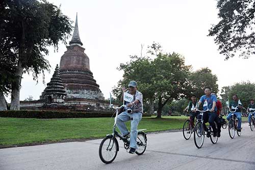 พร้อมกับร่วมเปิดตัวอุทยานประวัติศาสตร์โลว์คาร์บอนขึ้น อุทยานประวัติศาสตร์สุโขทัยแห่งนี้อยู่ตรงข้ามพิพิธภัณฑสถานแห่งชาติ รามคำแหง ห่างจากตัวจังหวัดสุโขทัย ไปทางทิศตะวันตกประมาณ 12 กิโลเมตรโดยมีถนนจรดวิถีถ่อง ทางหลวงหมายเลข 12 สายสุโขทัย-ตาก ผ่านพื้นที่