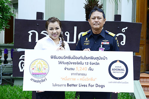 นางสุภาภรณ์ ลาสต์ ผู้อำนวยการองค์กรพิทักษ์สัตว์แห่งโลกประจำประเทศไทยเปิดเผยว่า โครงการมอบวัคซีนให้กับสุนัขจรจัดไม่เพียงแต่จะเป็นการส่งเสริมให้สุนัขได้มีคุณภาพชีวิตและสุขภาพที่ดีขึ้นเท่านั้น แต่ยังเป็นการลดการกระทำทารุณต่อสุนัขอีกทางหนึ่ง ทั่วโลกมีสุนัขประมาณ 700ล้านตัว-ส่วนใหญ่เป็นสุนัขจรจัดที่ไร้เจ้าของ ไม่เป็นที่ต้องการ ไม่แข็งแรง และไม่ได้รับวัคซีน มีสุนัขถูกกำจัดอย่างโหดร้ายหรือถูกฆ่าตายทุกปี ทั้งจากสาเหตุของโรคพิษสุนัขบ้าและจากความขัดแย้ง