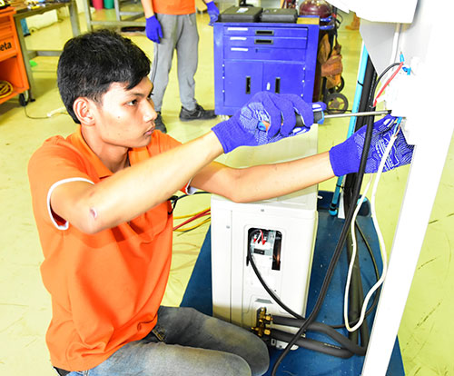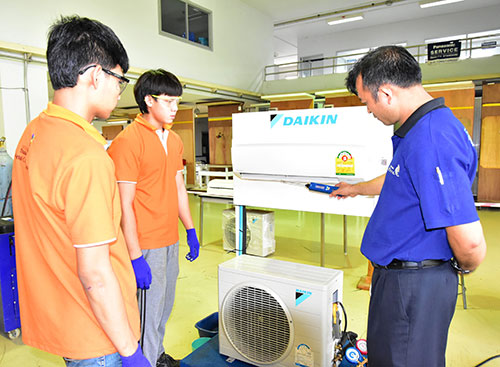 ทั้งนี้ที่ผ่านมา ไดกิ้น ได้ร่วมมือ กรมพัฒนาฝีมือแรงงานในการยกระดับช่างเทคนิคเครื่องปรับอากาศอย่างต่อเนื่อง โดยล่าสุดได้มีการจัดอบรมหลักสูตร“ช่างแอร์ดีดี เฟส2” เพื่อมอบโอกาสความก้าวหน้าในอาชีพ และต่อยอดสู่การสร้างธุรกิจ ด้วยการจัดอบรมทั้งทฤษฎีและปฏิบัติโดยไม่เสียค่าใช้จ่ายใดๆ พร้อมรับวุฒิบัตรรับรองจากกรมพัฒนาฝีมือแรงงาน ดังนั้น“ไดกิ้น” จึงยินดีสนับสนุนอย่างเต็มที่ในการมอบเครื่องปรับอากาศระบบสารทำความเย็นR22 เพื่อใช้สำหรับการฝึก ซ้อมระหว่างการเก็บตัวของเยาวชนไทย เพื่อการฝึกฝนและเรียนรู้นวัตกรรมของระบบสารทำความเย็นที่ไดกิ้นได้พัฒนาขึ้น