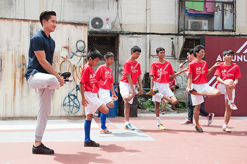 นอกจากจะส่งมอบสนามฟุตบอลพร้อมอุปกรณ์กีฬาแล้ว เอพียังได้จัดกิจกรรม “Football Clinic” ถ่ายทอดเทคนิคพื้นฐานการเล่นฟุตบอล ได้แก่ การลุกนั่งสลับกัน เพื่อวอร์มอัพยืดเส้นยืดสาย จับคู่เลี้ยงส่งบอล เพื่อฝึกสมาธิและการเล่นแบบทีมเวิร์ก ส่งบอลแบบซิกแซ็ก เตะบอลใส่ประตู ไปจนถึงการแข่งขันเป็นทีม โดยออกแบบกติกาให้น่าสนใจโดยให้น้องๆ แข่งทำประตูใส่ป้ายที่มีคะแนนแตกต่างกัน โดยมี อ้น-รังสรรค์ วิวัฒน์ชัยโชค อดีตนักฟุตบอลทีมชาติไทย และ หลุยส์ สก๊อต ดาราหนุ่มนักเตะร่วมกิจกรรม