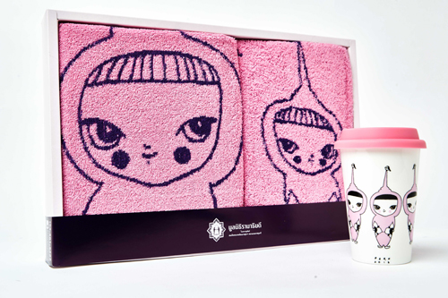 คอลเลคชั่นของที่ระลึก มูลนิธิรามาธิบดีเพื่อสถาบันการแพทย์จักรีนฤบดินทร์ ประจำปี 2559 ผลงานของ ทั้ง 4 ศิลปินดัง ประกอบด้วยเซตผ้าเช็ดตัว ขนาดเล็กและใหญ่ แก้วเซรามิกมีหูจับ แก้วเซรามิกมีฝาปิด กระเป๋าเดินทาง กระเป๋าสะพาย กระเป๋าถือ ผ้าพันคอเนื้อผ้าชีฟองและกระเป๋าใส่ดินสอ ใบละ 99 บาท