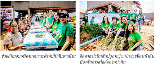 นอกจากนี้ เหล่าจิตอาสา ยังได้ร่วมทำกิจกรรมร่วมกับชาวบ้าน อาทิ ปลูกหญ้าแฝก เพื่อใช้รากของหญ้าแฝกเป็นผนังยึดหน้าดิน บริเวณริมหน้าผา และก่ออิฐสร้างกำแพงให้กับชาวบ้านอีกด้วย และนี่คือ ส่วนหนึ่งของพันธกิจสำคัญของโรบินสัน ในการตอบแทนสิ่งดีๆ กลับสู่สังคมภายใต้แนวคิด “โรบินสัน ตอบแทนสังคม ด้วยพลังความดี เพื่อความสุขที่ยั่งยืน”