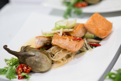 สำหรับเมนูอาหารไทยจากเทสโก้ แซลมอนคิงได้รับการรังสรรค์จาก เชฟยีสต์-นกุล กวินรัตน์ ได้แก่ ปลาแซลมอนแห้งแตงโม ยำแซลมอนมะเขือเปราะแสร้งว่าปลาแซลมอน และแซลมอนต้มมะดัน ล้วนแสดงให้เห็นถึงความหลากหลายของเนื้อปลาแซลมอนในการปรุงอาหารประเภทต่างๆ
