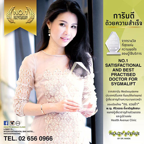 ดังนั้น เราก็จะเน้นในเรื่องของนวัตกรรม ในเรื่องของการใช้ยา ในเรื่องของใช้คอสโมโตโลยีต่างๆ เข้ามาช่วยกัน ทีนี้ในเรื่องรางวัลที่ได้รับมาตรงนี้ ก็จะเป็นนวัตกรรมล่าสุดในเรื่องของการยกกระชับผิวที่ไม่เจ็บ แล้วก็เห็นผลชัดเจนด้วย