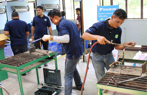 การเข้ารับการอบรมเราได้เปิดกว้าง โดยไม่จำกัดว่าจะเป็นช่างของเครื่องปรับอากาศยี่ห้อไหน จะใช้เวลา 3 วัน วันแรกจะเป็นทฤษฎี และวันที่สองจะเป็นเวิร์กช็อป ในวันที่ 3 จะเป็นการทดสอบมาตรฐานฝีมือแรงงานแห่งชาติ เพื่อทำการทดสอบมาตรฐานฝีมือแรงงานแห่งชาติช่างเครื่องปรับอากาศระดับ 1 เพื่อให้ทุกคนได้ฝึกปฏิบัติจริง และจะเน้นในเรื่องของ R32 โดยผู้ผ่านการอบรม จะได้รับวุฒิบัตรจากกรมพัฒนาฝีมือแรงงานและไดกิ้น และใบรับรองมาตรฐานฝีมือแรงานแห่งชาติ เครื่องปรับอากาศระดับ 1 จากกรมพัฒนาฝีมือแรงงาน เพื่อรับรองการผ่านมาตรฐานฝีมือแรงงานแห่งชาติ