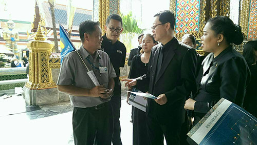 “การเข้าชมของนักท่องเที่ยวต่างชาติในวันแรกพบว่ามีความหนาแน่นประมาณ 30-40% ของพื้นที่ จึงยังสามารถรองรับนักท่องเที่ยวได้อีกมาก ขณะที่การต่อแถวเข้ากราบถวายบังคมพระบรมศพ พระบาทสมเด็จพระปรมินทรมหาภูมิพลอดุลยเดช ของคนไทยมีการจัดการได้ดี ไม่ปะปนกันกับนักท่องเที่ยวต่างชาติ ในช่วงการข้ามถนนก็มีเจ้าหน้าที่ดูแล ใช้เชือกช่วยสลับให้การเดินระหว่างสองกลุ่มรวดเร็วและปลอดภัย อีกทั้งมีเจ้าหน้าที่ตำรวจท่องเที่ยว กรมการท่องเที่ยว และสำนักพระราชวัง อำนวยความสะดวกแก่นักท่องเที่ยวและประชาชน ตลอดเส้นทางด้วย” รองอธิบดีกรมการท่องเที่ยวกล่าว พร้อมเสริมว่า “สำหรับนักท่องเที่ยวต่างชาติ ทางสำนักพระราชวัง กำหนดเวลาเปิด-ปิดให้นักท่องเที่ยวเข้าชม ตั้งแต่เวลา 08.30 -15.30 น. โดยเข้าและออกทางประตูวิเศษไชยศรี (เข้าและออกทางเดียวกัน) สำหรับคนไทย กำหนดเวลาเปิด-ปิด ให้กลุ่มคนไทยที่เข้ากราบถวายบังคมพระบรมศพ ตั้งแต่เวลา 08.00 - 16.00 น. เข้าทางประตูมณีนพรัตน์ และตั้งแต่เวลา 16.00 - 21.00 น. เข้าทางประตูวิเศษไชยศรี สำหรับประตูออกให้ใช้ประตูวิมานเทเวศร์ และประตูเทวาภิรมย์”