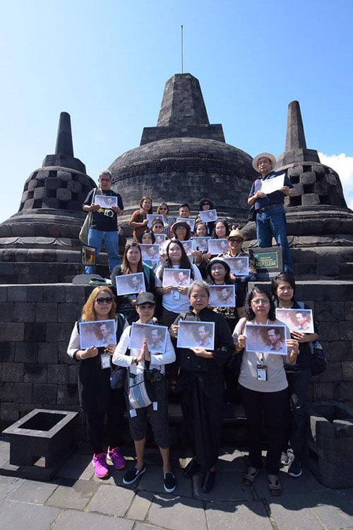 ในโอกาสที่สถาบันอยุธยาศึกษาโดย ดร.จงกล เฮงสุวรรณ ได้นำคณาจารย์และนักวิชาการไปศึกษาดูงานด้านประวัติศาสตร์และศิลปวัฒนธรรมอาเซียนที่อินโดนีเซียเมื่อวันที่๒๖-๓๐ตุลาคมที่ผ่านมานั้น คณะฯที่เดินทางไปครั้้งนี้ได้ร่วมกันน้อมสำนึกถึงพระมหากรุณาธิคุณในพระบาทสมเด็จพระเจ้าอยู่หัว ณ มหาสถูปโบโรบูดูร์ ( Chandi Borobudur) หรือ บาราบูดูร์ ในภาษาอินโดนีเซีย และ บุโรพุทโธหรือบรมพุทโธในภาษาไทย ซึ่งเป็นพุทธสถานที่พระองค์ได้เคยเสด็จมาทอดพระเนตรสถานที่แห่งนี้ในอดีต