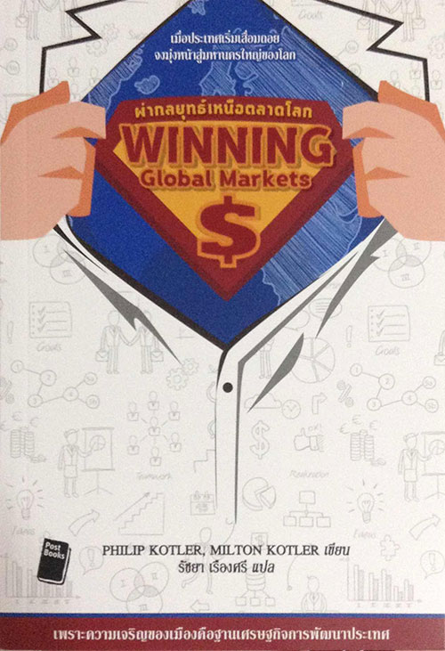 “ผ่ากลยุทธ์เหนือตลาดโลก” เขียนโดยสองพี่น้อง “PHOLIP และ MOLTON KOTLER” แปลเป็นไทย โดย “รัชยาเรืองศรี” เป็นเรื่องราวที่บอกเล่าให้คนทั้งโลกได้รับรู้ถึงการพัฒนาประเทศให้เกิดความเจริญเท่าเทียมกัน โดยผู้เขียน ชี้ให้เห็นว่า ในการสร้างความเจริญให้แก่ชุมชนต้องไม่มองกันเพียงแค่ เมืองใหญ่ที่มีการพัฒนาแล้วเท่านั้น แต่จะต้องให้ความสนใจกับชุมชน หรือท้องถิ่นที่กำลังพัฒนาเนื่องจาก ในท้องถิ่นดังกล่าวยังขาดความสมบูรณ์ ดังนั้น ในการจะสร้างธุรกิจให้เติบโตนักธุรกิจต้องมองไปที่เมืองซึ่งกำลังพัฒนามากกว่าเมืองที่พัฒนาแล้ว และเช่นเดียวกัน นักการเมือง ผู้บริหารประเทศก็ย่อมต้องให้ความสนใจกับเมืองที่กำลังพัฒนาเป็นพิเศษด้วย จำหน่ายเล่มละ 350 บาท