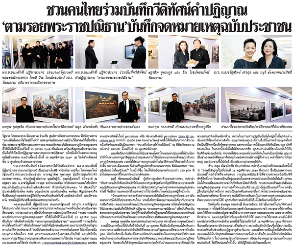 ชวนคนไทยร่วมบันทึกวีดิทัศน์คำปฏิญาณ ‘ตามรอยพระราชปณิธาน’บันทึกจดหมายเหตุฉบับประชาชน