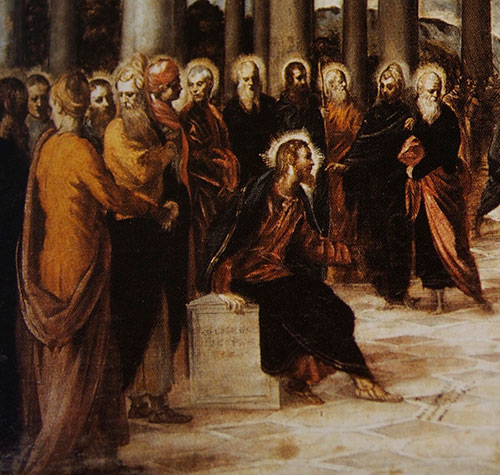 Christ and the Woman Taken in Adultery ของ Jacopo Robusti detail2