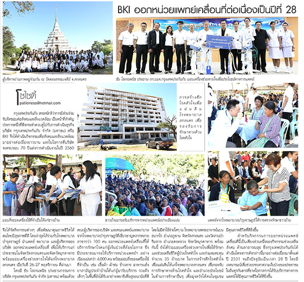 BKI ออกหน่วยแพทย์เคลื่อนที่ต่อเนื่องเป็นปีที่ 28