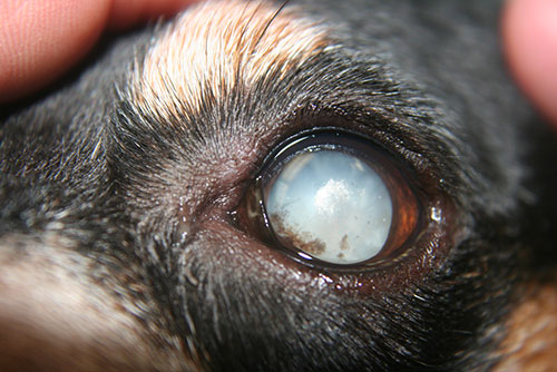 1.ต้อกระจก (Cartaract) เป็นความผิดปกติที่เกิดจากการขุ่นของเลนส์ตา(lens) ซึ่งมีจากการตกตะกอนของโปรตีนภายในตัวเลนส์ ความผิดปกตินี้อาจเกิดการขุ่นเพียงบางส่วน (partial) ซึ่งในกรณีนี้สุนัขยังสามารถมองเห็นได้ แต่อาจจะไม่ชัดเจนเหมือนปกติ แต่ในกรณีที่มีการขุ่นทั่วทั้งเลนส์ (complete) แล้วจะส่งผลต่อการมองเห็นของสัตว์ได้มากเหมือนการมองผ่านกระจกฝ้าที่ขุ่น ซึ่งอาจจะมองเห็นลางๆ หรืออาจจะมองไม่เห็นเลยก็ได้ ขึ้นอยู่กับความขุ่น และการที่แสงสามารถผ่านเลนส์ตาเข้าไปที่จอตาได้มากแค่ไหน