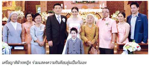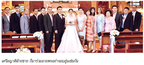ปัจจุบันเจ้าบ่าว-ทำธุรกิจในครอบครัวตำแหน่งผู้จัดการทั่วไป บริษัท วี เอ แอนด์ ซันส์ จำกัด เจ้าสาว-เป็นหัวหน้าส่วนสื่อสารการตลาด บริษัท ยูไนเต็ด อินฟอร์เมชั่น ไฮเวย์ จำกัด ด้านความรักของทั้งคู่ เพาะบ่มต้นรักกันมานานถึง 10 ปี เริ่มขึ้นเมื่อเจ้าสาวเรียนจบปริญญาตรี ได้ทำงานในบริษัทคุณพ่อ-คุณแม่เจ้าบ่าว จึงทำให้ทั้งคู่สนิมสนมกันและเริ่มพัฒนาจากพี่ชายมาเป็นคนรู้ใจ และด้วยไลฟ์สไตล์ที่คล้ายกัน ทำให้ทั้งคู่อยู่ด้วยกันแล้วมีความสุข มาเติมความอบอุ่นซึ่งกันและกัน และยังช่วยกันสานต่อธุรกิจของครอบครัวให้ก้าวหน้ายิ่งขึ้นด้วย โดยหลังจากงานฉลองมงคลสมรสผ่านไปแล้วทั้งคู่มีแพลนจะไปฮันนีมูนที่ประเทศญี่ปุ่นเพราะชื่นชอบในบรรยากาศและอาหารที่อร่อยอีกด้วย