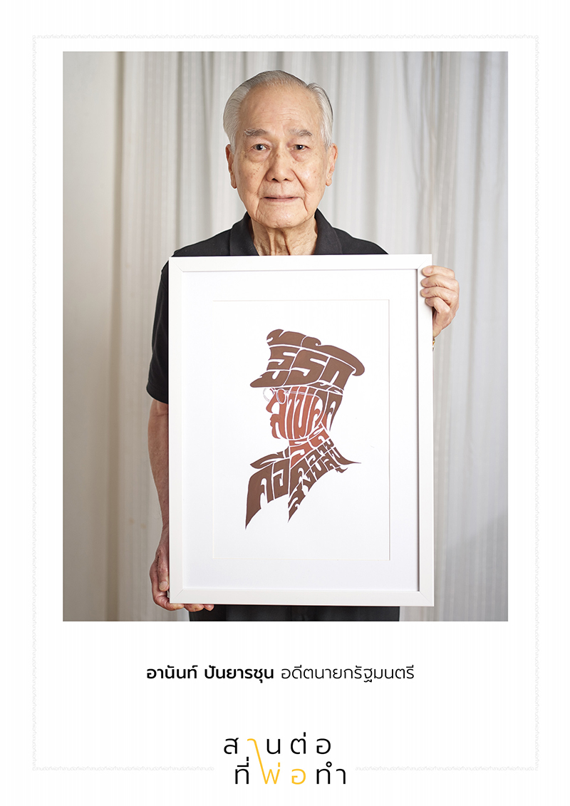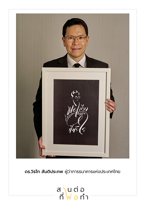 เมื่อเริ่มสร้างแรงกระเพื่อมให้ทุกคนมีพลังในการก้าวเดินตามรอยเท้าพ่อแล้ว จึงนำมาสู่แนวคิดการต่อเติมความตั้งใจของคนไทยให้เด่นชัด ด้วยภาพยนตร์โฆษณาเรื่อง “สานต่อที่พ่อทำ” ซึ่งถ่ายทอดเรื่องราวของบุคคลในหลากหลายมิติของสังคมที่มีความแตกต่างกัน ทั้งเพศ วัย การศึกษา อาชีพ อาทิ หม่อมเจ้าภีศเดช รัชนี, นายอานันท์ ปันยารชุน อดีตนายกรัฐมนตรี, ดร.วิรไท สันติประภพ ผู้ว่าการธนาคารแห่งประเทศไทย ฯลฯ แต่ทุกคนล้วนมีใจเดียวกัน คือ ใจที่พร้อมจะสานต่อสิ่งที่พ่อทำไว้ ซึ่งภาพยนตร์โฆษณาเรื่องนี้ได้ปูทางมาสู่กิจกรรมเพื่อผลักดันให้การสานต่อที่พ่อทำนั้นสัมฤทธิผล โดยเปิดโอกาสให้ทุกคนได้แสดงพลังแห่งความตั้งใจจริงผ่านการ “เขียนภาพพ่อด้วยปณิธานของคุณ” เพื่อบอกถึงความมุ่งมั่นว่าจะดำเนินชีวิตตามคำสอนของพ่ออย่างไร โดยสามารถเข้าไปเขียนคำสัญญาจากใจผ่านทางเว็บไซต์ www.สานต่อที่พ่อทำ.com ได้ตั้งแต่วันนี้จนถึงวันที่ 31 ธันวาคม 2559