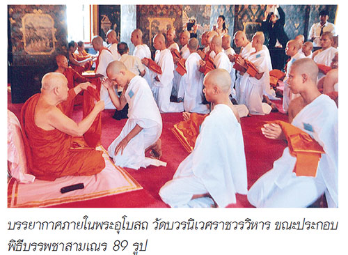 โดยมี สมเด็จพระวันรัต เจ้าอาวาสวัดบวรนิเวศราชวรวิหาร เป็นองค์ประธานประกอบพิธีบรรพชาสามเณร, วีระพล ตั้งสุวรรณ ประธานศาลฎีกา เป็นประธานฝ่ายฆราวาส และ ดร.ศุลีมาศ สุทธิสัมพัทน์ ประธานโครงการบรรพชาสามเณร 89 รูป เป็นผู้กล่าวถวายตัวนาค แด่ สมเด็จพระวันรัต และ ชาติชาย โฆษิตวัฒนฤกษ์ อธิบดีผู้พิพากษาศาลเยาวชนและครอบครัวกลาง พร้อมด้วย ชัยพรรษ เสริมสุวรรณ, ขรรค์ชัย สุนทร รองอธิบดีผู้พิพากษาศาลเยาวชนและครอบครัวกลาง, พีระพัฒน์ มหาโพธิกุล เลขานุการฯ, เข็มทอง เกตุหลิม ผู้อำนวยการฯ, ข้าราชการ เจ้าหน้าที่ศาลเยาวชนและครอบครัวกลาง โรงพยาบาลตุลาการเฉลิมพระเกียรติ สำนักงานศาลยุติธรรม และมูลนิธิสถานฝึกและอบรมเด็กและเยาวชนชายสิรินธรเข้าร่วมพิธีในครั้งนี้ด้วย
