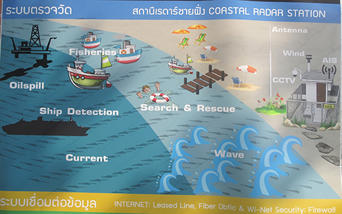 ขณะที่ “วัชระ เกษเดษ” นักภูมิสารสนเทศชำนาญการ GISTDA อธิบายว่า สถานีเรดาร์ชายฝั่งใช้ 2 ความถี่คือ “HF-Band” กับ “X-Band” ซึ่งผู้สนใจสามารถเข้าไปดูแบบ Real Time ได้ที่ http://coastalradar.gistda.or.th นอกจากนี้ยังมีแอพพลิเคชั่นโทรศัพท์มือถือ “ThaiCoast”ทั้งระบบ IOS และ Android ซึ่งมีความ “พิเศษ”คือ ถ่ายภาพและ “แชร์” พิกัดของภาพได้ เนื่องจากโทรศัพท์มือถือแบบสมาร์ทโฟน ระบุพิกัดได้ว่าตัวเครื่องอยู่จุดใด ประชาชนจึง “ร่วมแจ้งเหตุ”ได้ เมื่อพบสิ่ง “ผิดปกติ”