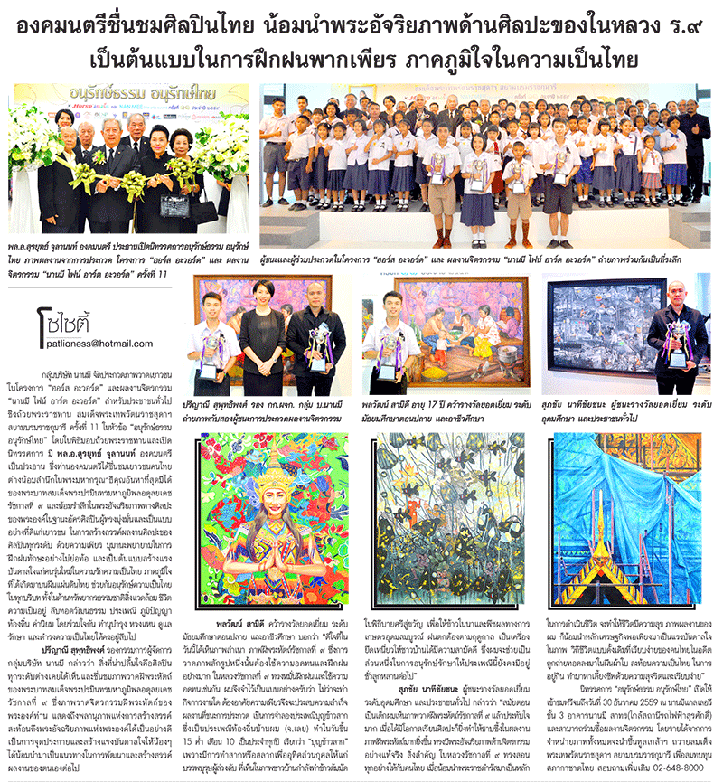 องคมนตรีชื่นชมศิลปินไทย น้อมนำพระอัจริยภาพด้านศิลปะของในหลวง ร.๙ เป็นต้นแบบในการฝึกฝนพากเพียร ภาคภูมิใจในความเป็นไทย