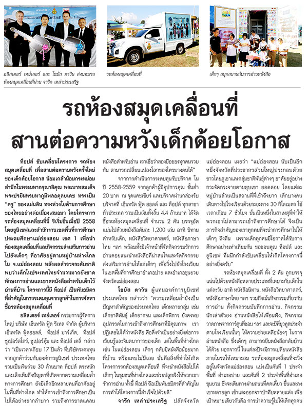รถห้องสมุดเคลื่อนที่ สานต่อความหวังเด็กด้อยโอกาส
