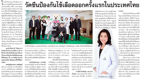 วัคซีนป้องกันไข้เลือดออกครั้งแรกในประเทศไทย