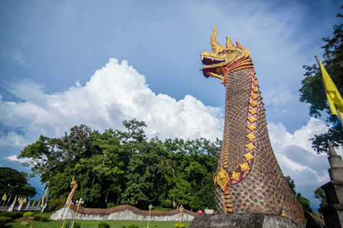 “จุดที่ 1...พญานาค” ทางขึ้นของพระบรมธาตุแช่แห้งนี้ จะมีพญานาค 2 ตนขนาบคู่ทางขึ้นอยู่ นามว่า “ท้าวศรสุนโธ” และ “แม่ศรีปทุมมา” เชื่อกันว่าพญานาคสองตนนี้เปรียบเสมือนสิ่งศักดิ์สิทธิ์ ที่คอยปกปักรักษาพระธาตุแช่แห้งไว้ให้ลูกหลานชาวเมืองน่าน ดังนั้นก่อนเข้าชมวัด ควรกราบขอขมาองค์พญานาคทั้ง 2 ฝั่ง เพื่อแสดงถึงการขออนุญาตเข้าไปรับบุญกุศลภายในสถานที่