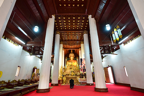 “จุดที่ 4...พระวิหารพระเจ้าอุ่นเมือง” หรือเรียกว่าพระวิหารหลวง เป็นที่ประดิษฐานพระพุทธรูปที่มีความน่าสนใจหลายองค์ อาทิ “พระเจ้าล้านทอง” องค์พระประธานปางมารวิชัย ศิลปะล้านนา ที่สร้างขึ้นในปี 2065 เป็นหนึ่งในพระพุทธรูปคู่บ้านคู่เมืองน่าน ร่วมด้วยพระพุทธรูปปางประทับยืน และ “พระอุ่นเมือง” เป็นศิลปะสกุลช่างน่าน ผู้ใดที่มากราบไหว้จะได้รับบุญกุศล ขัดเกลาจิตใจให้สงบผ่องใส