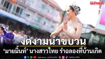 งดงามนำขบวนศรัทธา ‘มายมิ้นท์ จิราภรณ์’ นางสาวไทย 2569 รำฉลอง 15 ปี จ. บึงกาฬ