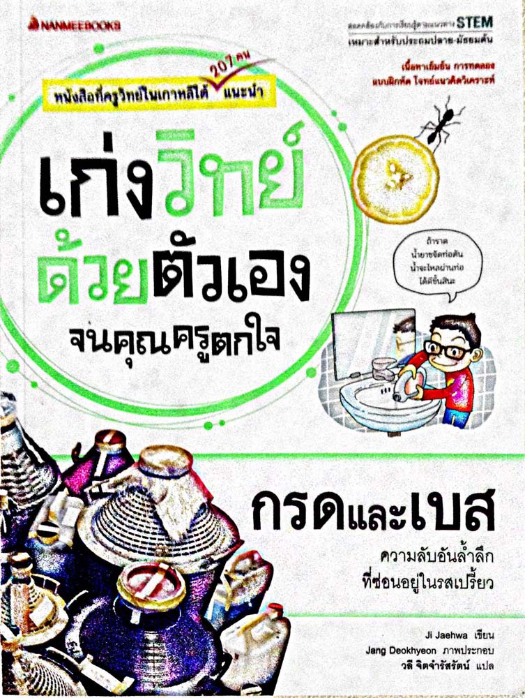 “เก่งวิทย์ ด้วยตัวเอง จนคุณครูตกใจ”เป็นหนังสือที่ปลูกฝังให้เด็กรักและเข้าใจในเรื่องราวของวิทยาศาสตร์ โดยเนื้อหาจะสอดคล้องกับการเรียนรู้ตามแนวทาง STEM ที่ใช้อยู่ในโรงเรียน ในหนังสือเล่มนี้ประกอบด้วย หลักการของวิชาวิทยาศาสตร์ในแต่ละเรื่อง และเพิ่มกิจกรรมให้ผู้อ่านได้ร่วมทำงานไปกับบทเรียนในหนังสือ ซึ่งให้ทั้งความสนุกสนาน และเพิ่มความรู้ เจาะลึกให้เด็กได้เข้าใจในเรื่องของ กรด และ เบส แบบง่ายๆ ได้รับรู้ถึงประโยชน์ และโทษ ที่ทุกคนต้องรับรู้ จำหน่ายเล่มละ 265 บาท