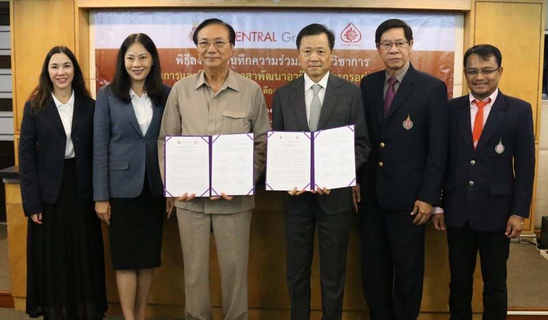 ณรงค์ฤทธิ์ จิราธิวัฒน์ กรรมการบริหาร บริษัท กลุ่มเซ็นทรัล จำกัด และ ศ.ดร.สมบัติ ธำรงธัญวงศ์ อธิการบดี มหาวิทยาลัยวลัยลักษณ์ จ.นครศรีธรรมราช ร่วมลงนามบันทึกความร่วมมือทางวิชาการ (MOU) โดยมี ศ.น.สพ.ดร.อภินันท์ สุประเสริฐ รองอธิการบดีฝ่ายวิจัยและบริการสังคม วันทนีย์ จิราธิวัฒน์ ผู้ช่วยกรรมการผู้จัดการใหญ่อาวุโส บริษัทกลุ่มเซ็นทรัล สมกมล จิราธิวัฒน์เวชชาชีวะ ผู้บริหารมูลนิธิเตียง จิราธิวัฒน์ ผศ.ดร.อมรศักดิ์สวัสดี รักษาการแทนผู้อำนวยการศูนย์บริการวิชาการ ลงนามเป็นสักขีพยาน โดยมีคณะผู้บริหาร คณาจารย์ เกษตรกร พนักงานบริษัทกลุ่มเซ็นทรัลและสื่อมวลชนร่วมงาน เมื่อวันที่ 11 มกราคม ที่ผ่านมา ณ ห้องประชุมโมคลาน อาคารบริหาร