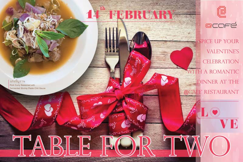 โรงแรมหัวช้าง เฮอริเทจ กรุงเทพฯ นำเสนอเซตเมนูวาเลนไทน์ ในบรรยากาศสุดแสนโรแมนติกดินเนอร์ใต้แสงเทียน เลือกสัมผัสอรรถรสความอร่อยไปกับเซตเมนูอาหารสไตล์เวสเทิร์นสุดหรู อาทิ สลัดทูน่าเต้าหู้ญี่ปุ่น, เนื้ออบเกรวี่ซอสไวน์แดงพริกไทยดำ และเค้กผลไม้ลูกพีช ฯลฯ หรือจะเลือกเซตเมนูอาหารไทยวิจิตรเลิศรส อาทิ พล่ากั้งน้ำมะกรูด, กุ้งทอดตะไคร้, แกงเผ็ดปูใบชะพลู และวุ้นกะทิสดกับสตรอเบอร์รี่ ฯลฯ พร้อมรับไวน์คุณภาพเยี่ยม และดอกไม้สำหรับคนพิเศษ ในราคา 1,999 บาทสุทธิ สำหรับ 2 ท่าน ที่ห้องอาหารมิสยาม เฉพาะคืนวันพุธที่ 14 ก.พ. สอบถามและสำรองที่นั่งโทร.02-2170777