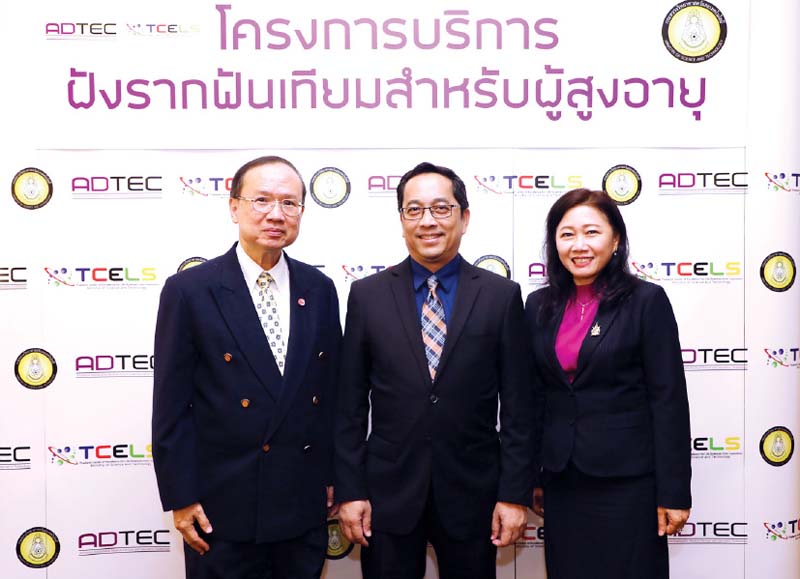 ดร.นเรศ ดำรงชัย ผู้อำนวยการศูนย์ความเป็นเลิศด้านชีววิทยาศาสตร์ (องค์กรมหาชน) หรือ TCELS กล่าวว่า หนึ่งในพันธกิจที่สำคัญของ TCELS คือการส่งเสริมและสนับสนุน การสร้างองค์ความรู้ การวิจัยและพัฒนาต่อยอดให้เกิด ผลิตภัณฑ์ บริการ และนวัตกรรมด้านชีววิทยาศาสตร์ เพื่อสร้างมูลค่าเชิงพาณิชย์และอุตสาหกรรม ซึ่งโปรแกรมพัฒนาเทคโนโลยีและนวัตกรรมเครื่องมือแพทย์วัสดุฝังใน หรือ ADTEC เป็นอีกหนึ่งความสำเร็จที่เราได้ให้การสนับสนุนผลักดันผลงานนักวิจัยไทยในการพัฒนาวิจัยนวัตกรรมรากฟันเทียมเป็นผลสำเร็จและขยายผลสร้างมูลค่าเชิงพาณิชย์ได้สำเร็จ ซึ่งนวัตกรรมรากฟันเทียมฝีมือคนไทยนี้ได้มาตรฐานสากลทุกประการ แต่มีราคาถูกกว่ารากฟันเทียมที่ต้องนำเข้าจากต่างประเทศ โครงการบริการฝังรากฟันเทียมผู้สูงอายุในครั้งนี้ ไม่เพียงแต่จะช่วยลดความเลื่อมล้ำทางสังคม สร้างคุณภาพชีวิตที่ดีแก่ผู้สูงวัย แล้วยังจะสร้างความน่าเชื่อให้กับอุปกรณ์การแพทย์ที่คิดค้นวิจัยพัฒนาและผลิตขึ้นโดยคนไทยอีกด้วย