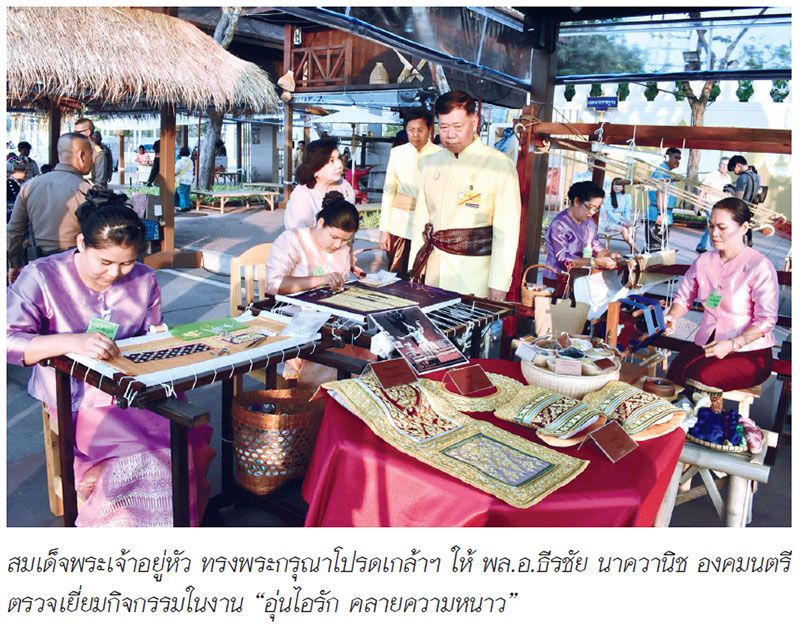 ช่วงเย็นวันเดียวกัน สมเด็จพระเจ้าอยู่หัว ทรงพระกรุณาโปรดเกล้าฯ ให้ พล.อ.ธีรชัย นาควานิช องคมนตรี ตรวจเยี่ยมกิจกรรมในงาน “อุ่นไอรัก คลายความหนาว” พร้อมร่วมถวายสักการะพระบรมราชานุสรณ์ พระบาทสมเด็จพระจุลจอมเกล้าเจ้าอยู่หัว (รัชกาลที่ 5) จากนั้นเยี่ยมชมนิทรรศการภาพแห่งความทรงจำโมเดลการบริหารจัดการน้ำ นิทรรศการพระราชกรณียกิจสมเด็จพระนางเจ้าสิริกิติ์ พระบรมราชินีนาถ ในรัชกาลที่ 9 ร้านในพระบรมวงศานุวงศ์ เยี่ยมชมจิตอาสา 904 ร้านกระทรวงการต่างประเทศ ซึ่งจำหน่ายสินค้าจากต่างประเทศ ที่สถานทูต สถานกงสุล ต่างประเทศทั่วโลกนำมาจำหน่ายในราคาถูก ร้านสมาคมภริยาสำนักงานปลัดกระทรวงกลาโหม ร้านจำหน่ายบัตรกัลปพฤกษ์ ต้นโพธิ์เงิน ต้นโพธิ์ทอง และจำหน่วยบัตรการกุศลอุ่นไอรัก ร่วมสอยกัลปพฤกษ์และมอบรางวัลรถจักรยานแก่ผู้โชคดี