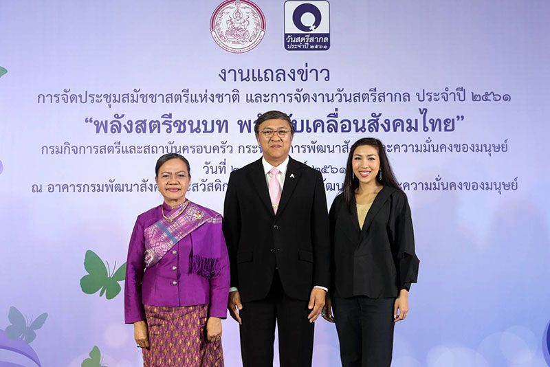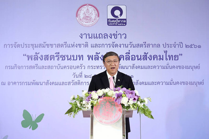 ในวันที่ 28 กุมภาพันธ์ 2561 เวลา 11.00 น. ณ ห้องโถง ชั้น ๑ อาคารกรมพัฒนาสังคมและสวัสดิการ กระทรวงการพัฒนาสังคมและความมั่นคงของมนุษย์ (พม.) นายเลิศปัญญา บูรณบัณฑิต อธิบดีกรมกิจการสตรีและสถาบันครอบครัว แถลงข่าวเตรียมจัดงานวันสตรีสากล ประจำปี 2561 ภายใต้กรอบแนวคิด “พลังสตรีชนบท พลังขับเคลื่อนสังคมไทย” ชูบทบาทสตรีชนบท ขานรับนโยบายลดความเหลื่อมล้ำ เสริมแกร่งและสนับสนุนสตรีให้มีศักยภาพสร้างความยั่งยืนให้ประเทศ