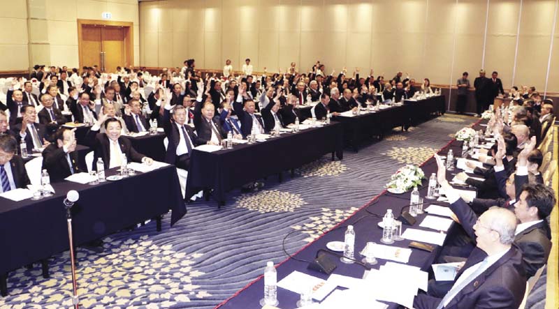 สมเกียรติ เหล่าทวีสุข นายกกิตติมศักดิ์เกียรติคุณถาวร พร้อมด้วย กิตติพงษ์ เตรัตนชัย นายกสมาคมฯ, ชวลิต ทวียนต์ชัย อุปนายกฯ, ชุณห์ คชพัชรินทร์ นายกกิตติมศักดิ์เกียรติคุณถาวร, สุพจน์ ศรีโรจนันท์ อุปนายก, สว่าง วงศ์ศรีรุ่งเรือง