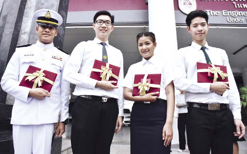 เยาวชนวิศวกรรมศาสตร์ 24 คนจากทั่วประเทศ และคณะกรรมการบริหารกองทุนเพื่อการศึกษาและวิจัยทางด้านวิศวกรรมศาสตร์ ในพระราชูปถัมภ์ สมเด็จพระบรมโอรสาธิราชฯ สยามมกุฎราชกุมาร