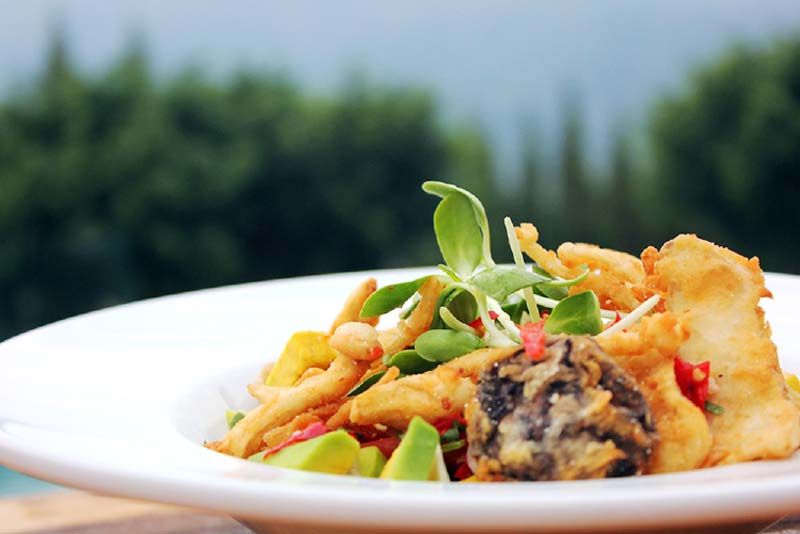 คนรักเมนูเห็ดไม่ควรพลาด เพราะช่วงนี้เป็นฤดูที่เห็ดมีความสด หอม หวานที่สุดในรอบปี ที่ต้องชวนคนที่คุณรักมาทาน ด้วยเมนูซิกเนเจอร์อย่างเมนู “เห็ดสดเขาใหญ่ย่างชานอ้อยน้ำจิ้มแจ่ว” รวมเห็ดออร์แกนิกมากกว่า 5 เมนู เช่น เห็ดแชมปิยองขาวดำ เห็ดออรินจิ เห็ดหอมชิตาเกะ นำมาย่างสดบนเตาถ่านให้กลิ่นหอมหวานด้วยชานอ้อย ผสมคลุกเคล้ากับน้ำจิ้มแจ่วให้รสชาติที่อร่อยจัดจ้าน