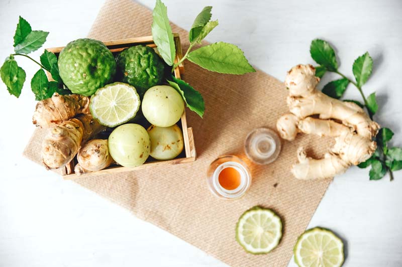 ว่านหางจระเข้ ส่วนผสมอีกชนิดหนึ่งที่มีฤทธิ์ต้านเชื้อแบคทีเรีย ช่วยขจัดรังแค รักษาแผลบนศีรษะ ทั้งยังบำรุงหนังศีรษะ และบำรุงเส้นผมให้เงางามมะขามป้อม ประกอบไปด้วยกรดอินทรีย์หลายชนิด อาทิ กรดมาลิค กรดมูซิค และวิตามินซี มีสรรพคุณช่วยทำความสะอาด กำจัดเชื้อโรค ช่วยให้ผมดกดำ หงอกช้า และยังกระตุ้นการงอกของเส้นผมอีกด้วยขิงแก่ มีคุณสมบัติช่วยบรรเทาอาการหลุดร่วงของเส้นผม เพิ่มการเจริญเติบโตของเส้นผม และมีส่วนช่วยให้เส้นผมดกดำขึ้นด้วย
