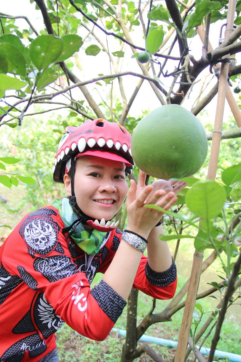 บนเส้นทางวิถีอินทรีย์ระยะทางยาวกว่า 60 กิโลเมตร ที่ถูกปักหมุดไว้เต็มไปด้วยมนต์เสน่ห์แห่งธรรมชาติ สีเขียวขจีของนาข้าวมองไกลสุดลูกตา สลับความงามของสวนผลไม้ และวิถีชีวิตชุมชนเก่าแก่ ที่รายล้อมตลอดสองข้างทางชวนหลงใหลยิ่งนัก ทริปนี้ เริ่มสตาร์ทแปดโมงเช้าที่ตลาดสุขใจ เป้าหมายแรก ปั่นไปสวนส้มโออินทรีย์อุบลการะเวก ต.ทรงคะนอง ผ่านหน้าวัดไร่ขิง ระยะทางประมาณ 8 กิโลเมตร จุดนี้ได้เรียนรู้การทำสวนส้มโออินทรีย์ ซึ่งลุงอุบล (เจ้าของสวน) อธิบายละเอียดยิบ ตั้งแต่ขั้นตอนการปลูก วิธีดูแลรักษา การใช้ชีวภัณฑ์ชนิดต่างๆ รวมถึงแนะเทคนิคการเลือกส้มโอ พร้อมพาไปเยี่ยมชมบรรยากาศในสวน ที่ปลูกส้มโอสายพันธุ์ทองดี และขาวน้ำผึ้ง พื้นที่ประมาณ 8 ไร่ และจากการแลกเปลี่ยนพูดคุยตอบข้อซักถามหลายประเด็น สุดท้ายลุงอุบลยืนยันว่า เกษตรอินทรีย์ ไม่ได้ช่วยแค่สุขภาพดีอย่างเดียว แต่ช่วยให้เศรษฐกิจสังคม สิ่งแวดล้อมดีขึ้นด้วย