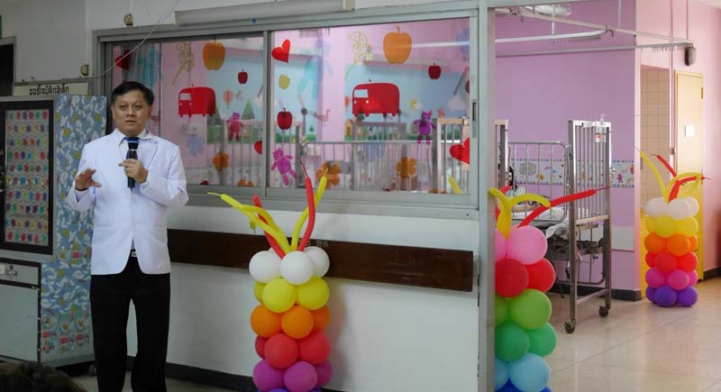 ผศ.นพ.วิชัย ชื่นจงกลกุล ผอ.โรงพยาบาลมหาราชนครเชียงใหม่ กล่าวขอบคุณ มูลนิธิ โรนัลด์ แมคโดนัลด์ เฮาส์ ในโอกาสส่งมอบห้องเปี่ยมรัก