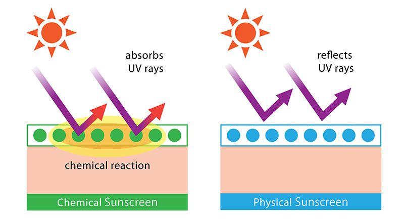 ปัจจุบันครีมกันแดดในท้องตลาดมีให้เลือก 3 ประเภทด้วยกัน คือ 1.ครีมกันแดดชนิด Chemical Sunscreen (เคมีคอลซันสกรีน) เป็นครีมกันแดดที่มีส่วนผสมของสารเคมี ทำหน้าที่ในการปกป้องแสงแดด เมื่อได้รับรังสียูวีเข้าไป ก่อให้เกิดสารใหม่ที่ทำให้ผิวหนังระคายเคือง แพ้ ผื่นคัน ซึ่งพบบ่อยในคนที่ผิวหนังแพ้ง่าย 2.ครีมกันแดดชนิด Physical Sunscreen (ฟิสิคอล ซันสกรีน) จะมีส่วนผสมหลักของสาร Titanium Dioxide และ Zinc Oxide ที่สามารถสะท้อนรังสี UVA และ UVB ที่ตกกระทบให้ออกไปจากผิวหนังได้ เหมาะกับกลุ่มคนที่มีผิวแพ้ง่าย และ 3.ครีมกันแดดชนิดผสม Chemical-Physical Sunscreen”