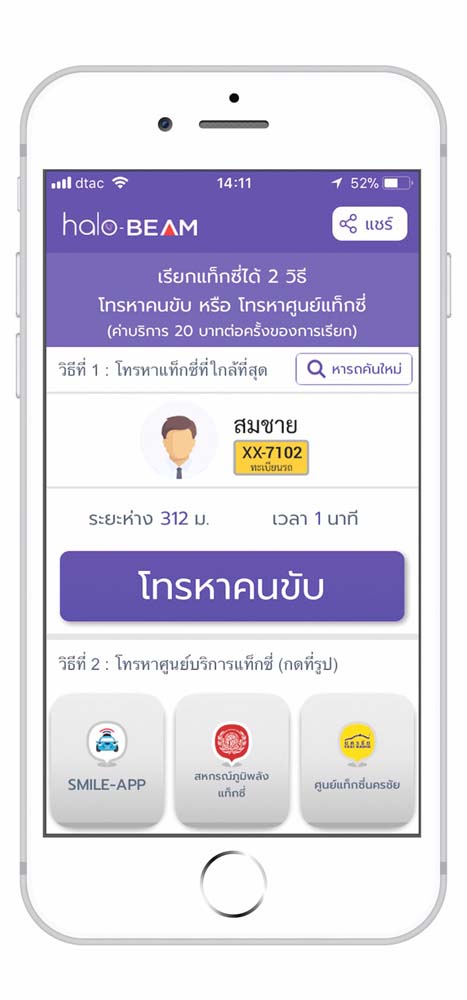 นี่คือ“ฮาโล-บีม” (Halo-Beam)แอพฯเรียกแท็กซี่ที่เอาใจผู้สูงวัย ซึ่งผู้ใช้บริการสามารถโทร.ตรงหาคนขับแท็กซี่ ที่อยู่ในรัศมีการให้บริการได้ โดยไม่ต้องใส่จุดรับ-ส่ง และไม่ต้องใส่ข้อความในแอพฯให้ยุ่งยาก ตัวอักษรใหญ่อ่านง่าย เปิดให้บริการแล้วในกรุงเทพฯ อุบลฯ ขอนแก่น เชียงราย และโคราช ในอนาคตจะบริการที่เชียงใหม่ ภูเก็ต และชลบุรี