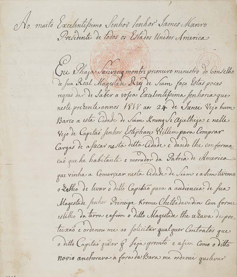 จดหมายจากพระยาสุริยวงศ์มนตรี (ดิศ บุนนาค) ถึง ประธานาธิบดี เจมส์ มอนโร