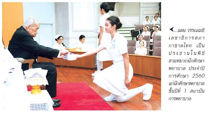 โดยเมื่อวันที่ 31 พฤษภาคม ที่ผ่านมา แผน วรรณเมธี เลขาธิการสภากาชาดไทย เป็นประธานในพิธีสวมหมวกนักศึกษาพยาบาล ประจำปีการศึกษา 2560 แก่นักศึกษาพยาบาลชั้นปีที่ 1 สถาบันการพยาบาลศรีสวรินทิรา สภากาชาดไทย จำนวน 206 คน ณ ห้องประชุมหม่อมเจ้าหญิงมัณฑารพ กมลาศน์ สถาบันการพยาบาลฯ โดยมี คณะผู้บริหารของสภากาชาดไทยและคณะผู้บริหารของสถาบันการพยาบาลฯ ร่วมในพิธีโดยพิธีนี้จะจัดขึ้นภายหลังที่นักศึกษาพยาบาลได้สอบผ่านวิชาพื้นฐานมาแล้ว เพื่อเตรียมความพร้อมสำหรับการฝึกฝนอบรมในบทบาทหน้าที่ของพยาบาล ให้เป็นผู้ที่มีจิตสำนึกที่ดีต่อการให้บริการสุขภาพแก่ประชาชนและเกิดความภาคภูมิใจในศักดิ์ศรี เกียรติภูมิของวิชาชีพการพยาบาล และสถาบันการพยาบาลศรีสวรินทิราสภากาชาดไทย
