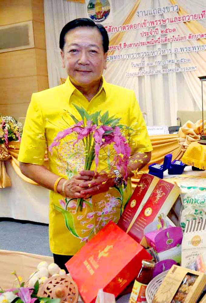 ชนัตถ์ นันทปัญญา ที่ปรึกษาคณะกรรมการจัดงาน กล่าวว่า เพื่อรักษาไว้ซึ่งขนบธรรมเนียมประเพณีอันดีงามของประเทศไทยและวัฒนธรรมอันล้ำค่าของท้องถิ่น ทั้งเป็นการส่งเสริมการท่องเที่ยวของจังหวัดสระบุรีอีกทางหนึ่งด้วย วันแรกของการจัดงานจะเป็นพิธีบวงสรวงดวงพระวิญญาณสมเด็จพระเจ้าทรงธรรม และสิ่งศักดิ์สิทธิ์ที่มีอยู่ในอาณาบริเวณพระพุทธบาท การแสดงศิลปะพื้นบ้าน วัฒนธรรม และขบวนต่างๆ จะเริ่มเคลื่อนขบวนออกจากหน้าสำนักงานเทศบาลเมืองพระพุทธบาทไปตามถนนพหลโยธิน และเลี้ยวเข้าบริเวณวัดพระพุทธบาทราชวรมหาวิหาร ดอกไม้ที่ใช้ตักบาตรแด่พระภิกษุสงฆ์นั้นจะต้องเป็น “ดอกเข้าพรรษา” เท่านั้น ซึ่งในปีนี้จะมีพิธีเปิดงานในวันพฤหัสบดีที่ 26 กรกฎาคม 2561