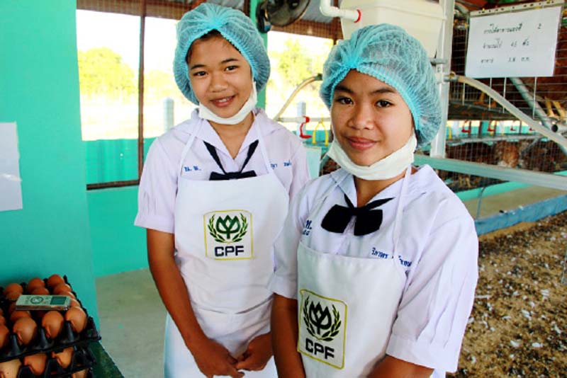 น้องนิ่ม เล่าว่า เธออาสาสมัครคุณครูช่วยดูแลไก่ 200 ตัวในโรงเรือนเลี้ยงไก่ที่โรงเรียน เพราะที่บ้านของเธอก็เลี้ยงไก่ไว้เช่นกันแต่เป็นไก่บ้าน เธอได้เรียนรู้ความแตกต่างระหว่างการเลี้ยงไก่พันธุ์และไก่บ้านจากพี่ๆ ซีพีเอฟที่ช่วยถ่ายทอดความรู้เรื่องการดูแลไก่ การให้อาหารไก่ สอนให้สังเกตไก่ เช่น สีหน้าของไก่ การตรวจเช็คอุปกรณ์ให้น้ำไก่ สิ่งที่เธอได้เรียนรู้จากการปฏิบัติจริงในวันนี้สามารถนำไปต่อยอดเป็นอาชีพได้ในอนาคต และอาชีพเลี้ยงไก่ไข่ก็เป็นอาชีพที่สามารถเลี้ยงตัวเองได้ เช่นเดียวกับ “น้องฟิล์ม” เป็นอีกคนหนึ่งที่อาสาคุณครูช่วยดูแลโรงเรือนเลี้ยงไก่ไข่ บอกว่า รู้สึกภูมิใจที่ได้ทำหน้าที่ดูแลไก่ 200 ตัว และเก็บไข่ไก่ไปเป็นอาหารกลางวันให้กับเพื่อนๆ ในโรงเรียน เป็นประสบการณ์ที่ดีที่นำไปเป็นอาชีพในอนาคตได้