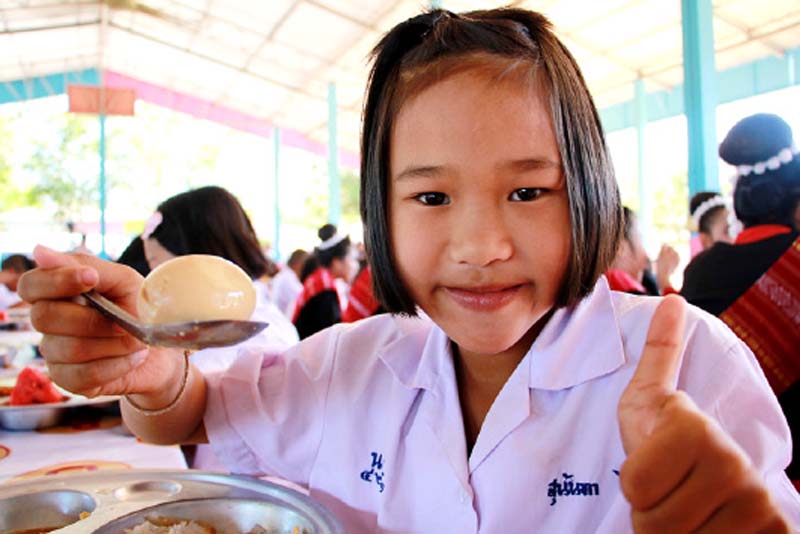 “วราภัสร์ แก้วเมืองพัชรกุล” ผู้อำนวยการโรงเรียน กล่าวว่า การที่โรงเรียนเป็นแหล่งผลิตไข่ไก่ได้เอง ทำให้เด็กนักเรียนได้บริโภคไข่มากขึ้นและบ่อยขึ้น จากเดิมที่โรงเรียนนำผลผลิตไข่ไก่มาจัดเมนูอาหารกลางวันให้นักเรียนได้รับประทานสัปดาห์ละ 1-2 วัน หลังจากที่โรงเรียนเป็นแหล่งผลิตไข่ไก่ได้เองแล้ว ก็จะทำให้นักเรียนได้บริโภคไข่ไก่เป็นสัปดาห์ละอย่างน้อย 3 วัน ช่วยลดปัญหาทุพโภชนาการของเด็กนักเรียนได้ อาทิ ในกลุ่มของเด็กที่ยากจนก็จะมีโอกาสได้รับประทานไข่ไก่เป็นอาหารมื้อกลางวัน ส่วนเด็กที่มีปัญหาเกี่ยวกับพฤติกรรมการกิน ไม่ชอบกินไข่และผู้ปกครองก็ไม่บังคับให้กินแต่เมื่อมาโรงเรียนแล้ว เด็กๆ จะต้องกินไข่ ซึ่งเป็นเมนูอาหารกลางวันที่โรงเรียนจัดให้